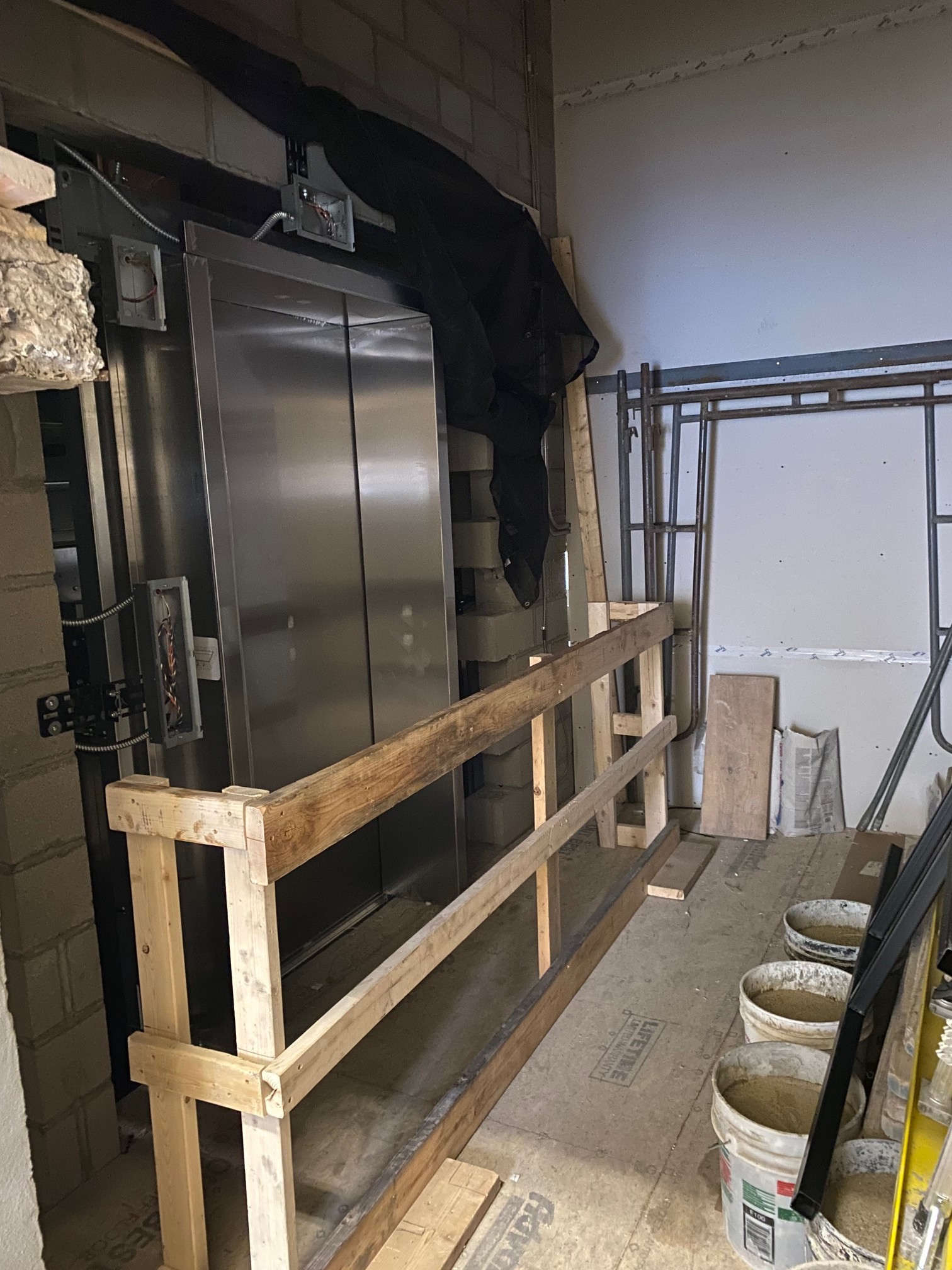 The elevator is scheduled to be delivered to Otis Elevator in Agawam this week where it will remain until the shaft is completed, the electrical lines are installed, and inspection is completed. Actual installation of the elevator will take 4-6 weeks plus additional time for inspection to be completed.