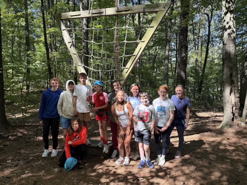 These are some images of our youth from the summer of 2025. Several of the youth participated in a week long mission trip to Maine. On the day before Youth Fellowship started for the program year, some of the youth bonded together at the Springfield College Ropes Course.