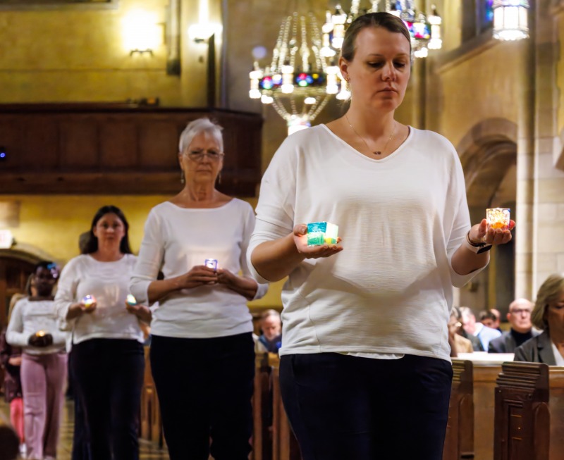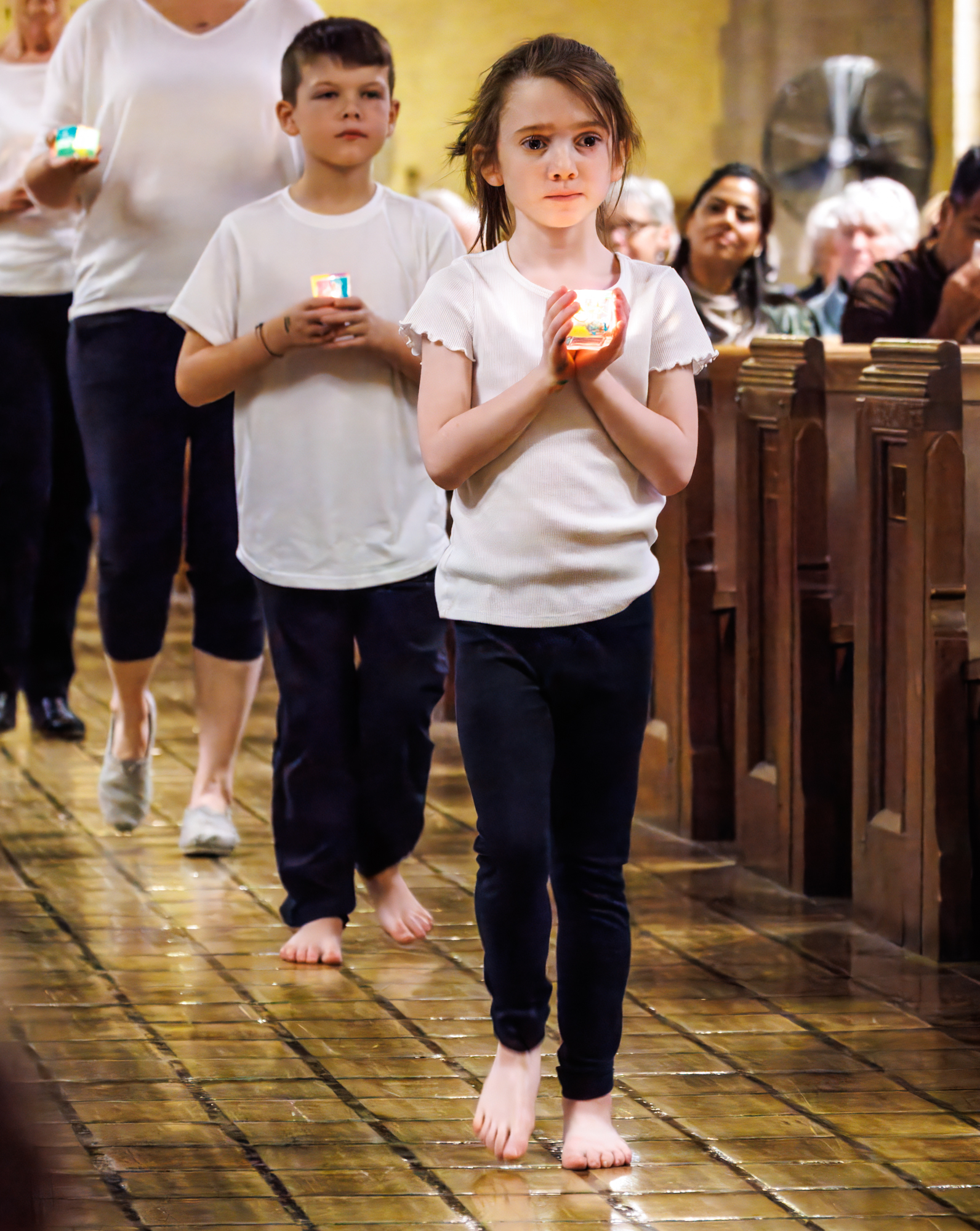 A very important feature of the worship service is the Naming of the Saints who have passed on during the year. Members of the Dance Movement Choir carry in lit candles as the name of each saint is read. The Dance Movement Choir then presents a sacred dance number honoring the saints. The candle holders were decorated by the kids who participate in Chapel Kids.