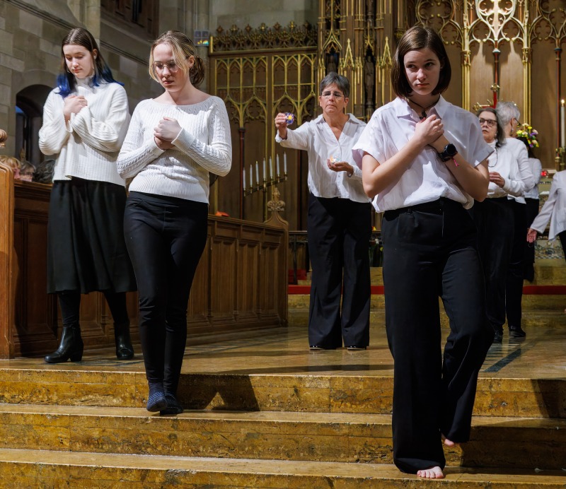 During the procession, members bring flowers forward in rememberance of loved ones. These are then distributed to the congregation at the close of the service. The music was specially chosen for the service and Erin Newcomb-Moore provided violin accompainment.