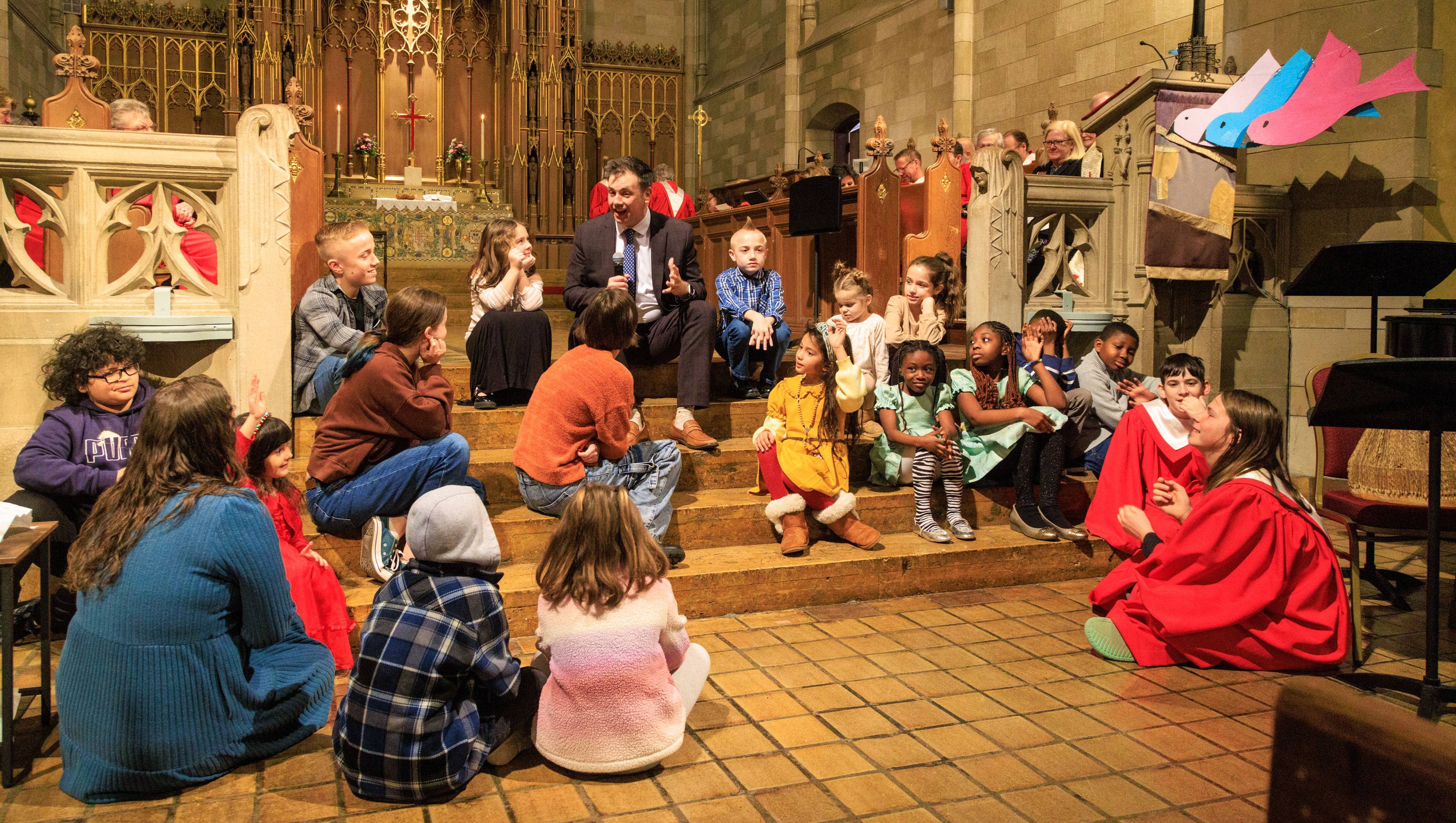 Rob's Lenten Children's Message series for 2026 is entitled, "Looking Up." Each week he is encouraging them to think about the things we see in the sky above and what they can tell us about God's love for us. During coffee hour the children are asked to gather in Asbury Hall and paint pictures of what was talked about during the Children's Message. The pictures will be added to the collective mural they are creating about the sky and what these items can tell us about God, ourselves, and God's love.