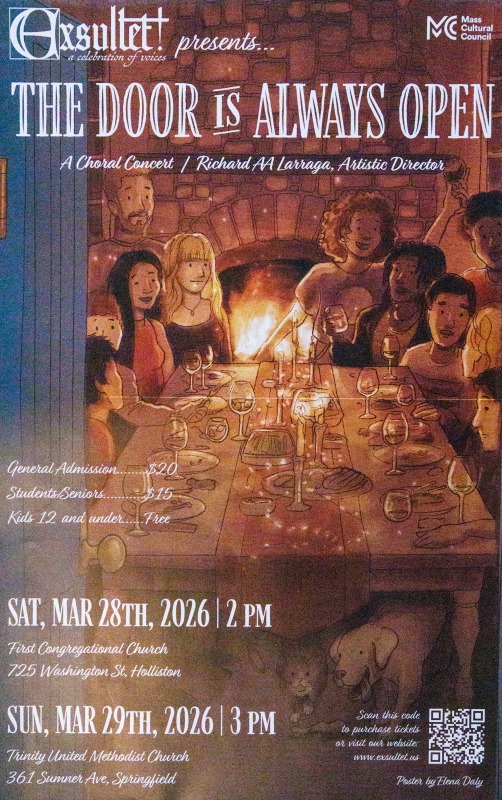 The auditioned women's ensemble Exsultet! A Celebration of Voices will present a spring concert entitled "The Door is Always Open" featuring favorites like Feed the Birds and They Can’t Take That Away from Me, to songs of peace and harmony including Shalom and Crowded Table the program celebrates connection and belonging. At Exsultet!, every voice belongs—because the door is always open.